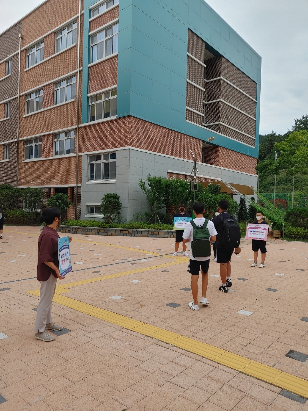 등교시간에 실시하였습니다. 학생회 회장단과 함께 하면서 '서로가 서로를 지켜 주는 선한 수호천사'가 되어 주세요.