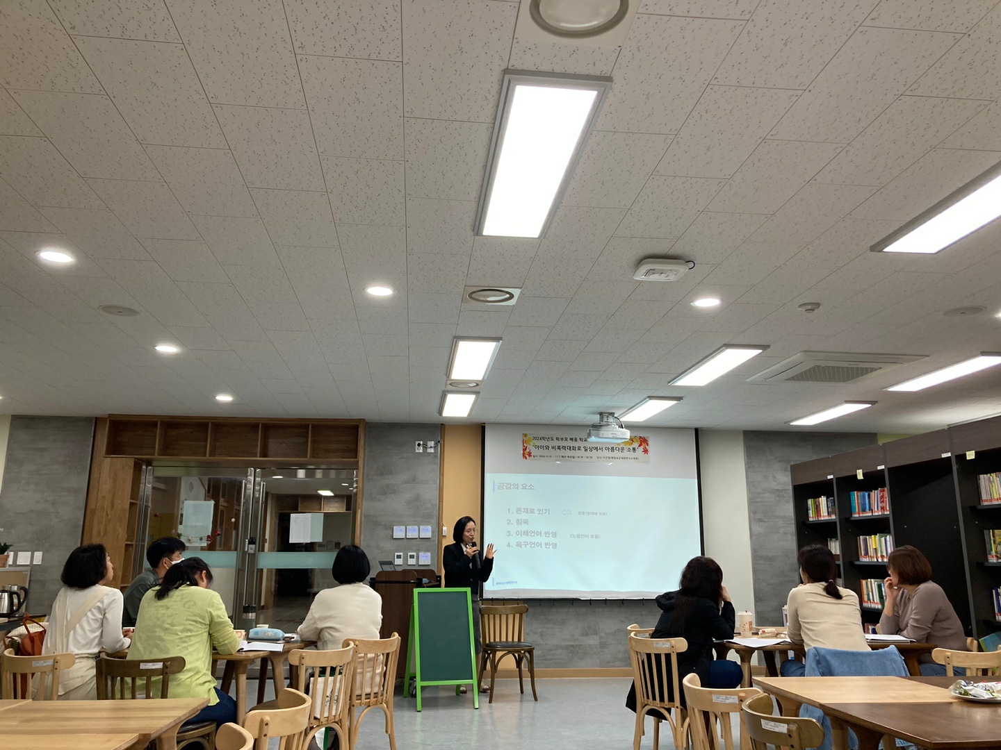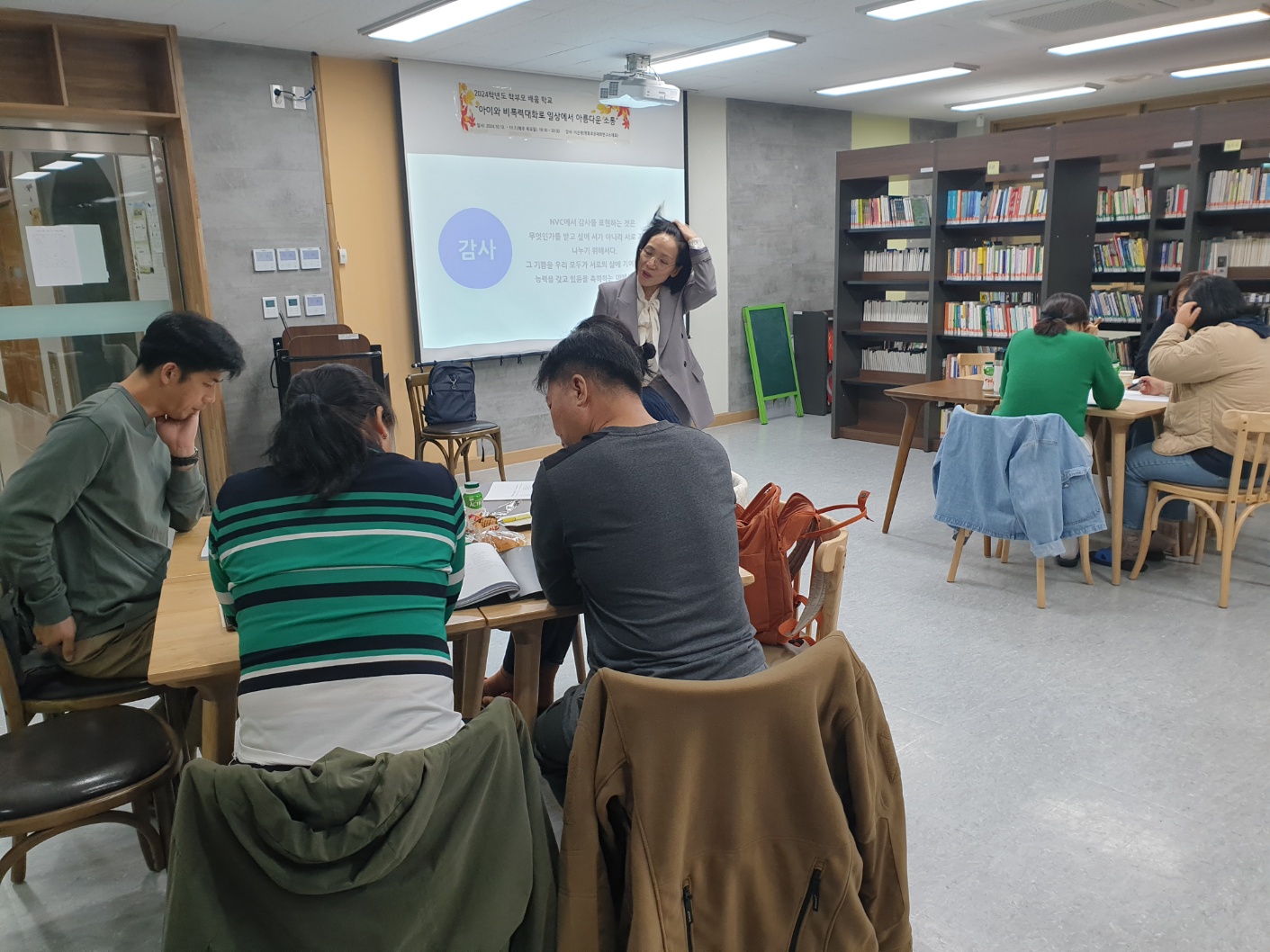 ‘아이와 비폭력대화로 일상에서 아름다운 소통’이라는 주제로 2024년 10월 10일~11월 7일, 매주 목요일 실시한 2024. 학부모 함께 배움 연수 5회기(10시간) 잘 마무리하였습니다.
